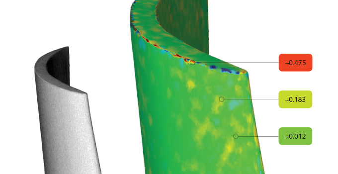 ATOS 5 for Airfoil delivers high-precision full-field data for comprehensive process and quality control of fan blades, turbine blades, blisks and different vanes (NGVs, OGVs, IGVs). The data quality provided by the sensor meets the high requirements of the industry. For the measurement of turbine blades the accuracy and thus the resolution at the edges are of particular importance.