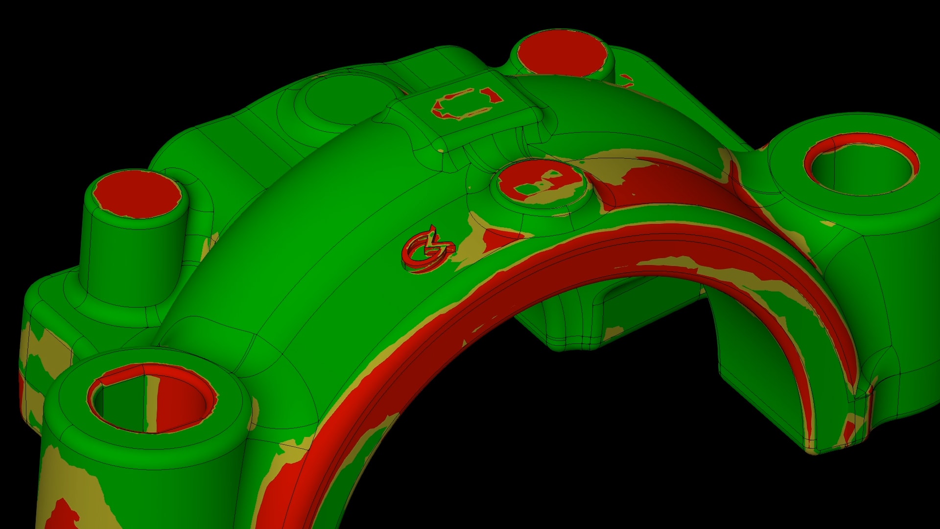 Với phần mềm GOM Inspect Pro, bạn có thể nhanh chóng kiểm tra các khuyết tật trên bề mặt chi tiết. Phương pháp này nhanh hơn nhiều lần so với phương pháp dùng đá mài thủ công truyền thống.